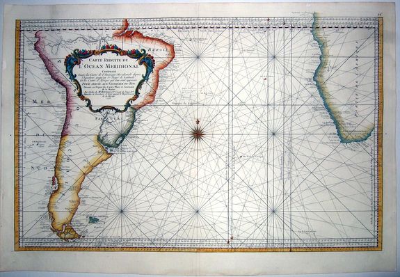 SOUTH ATLANTIC,- Carte Reduite De L'Ocean Meridional Contenant Toutes les Costes de l'Amerique Meridionale depuis l'Equateur . . . 1753 |