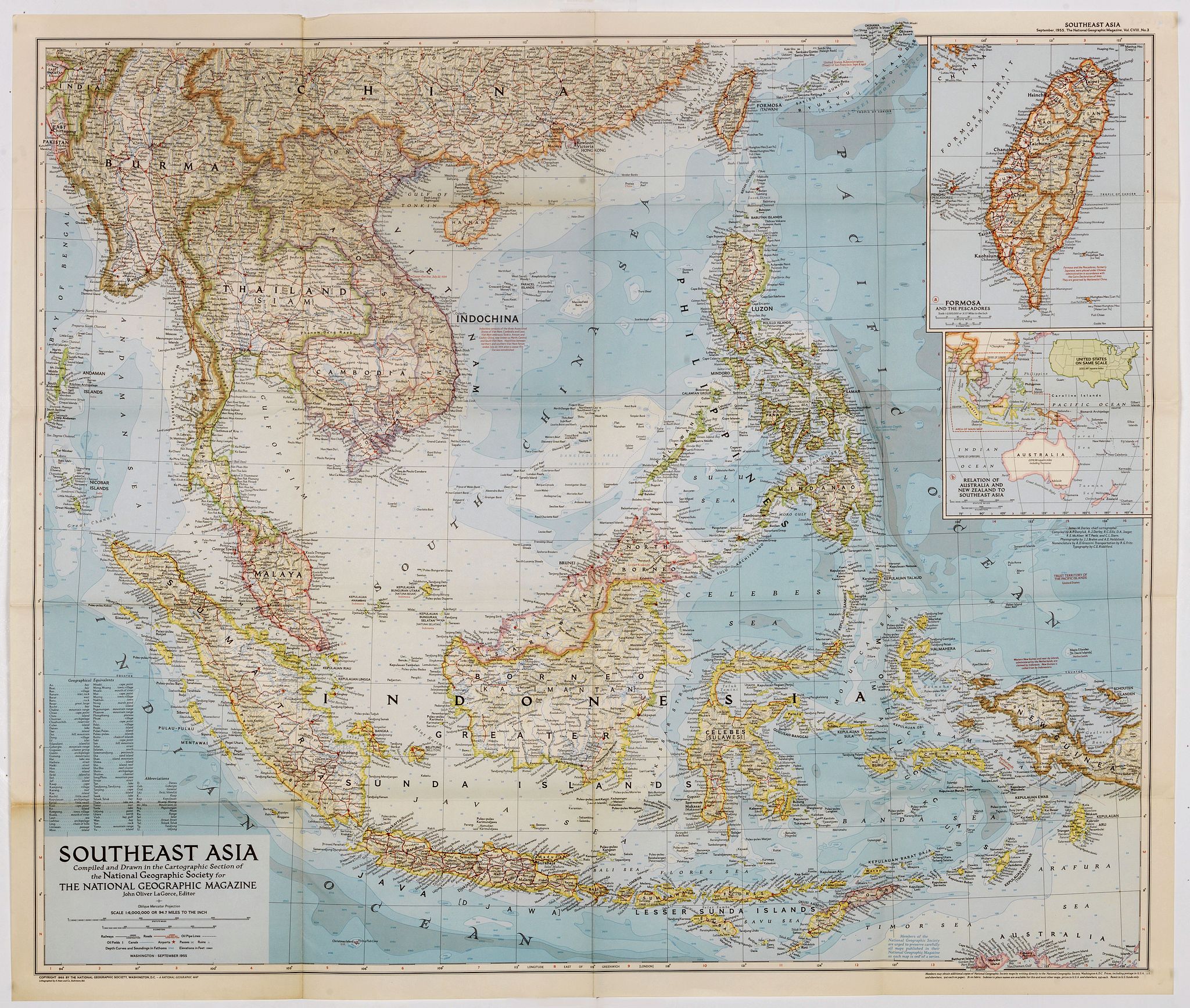 Southeast Asia Compiled and Drawn in the Cartographic Section of the National Geographic Society for the National Geographic Magazin Gilbert Grosvenor. . . |