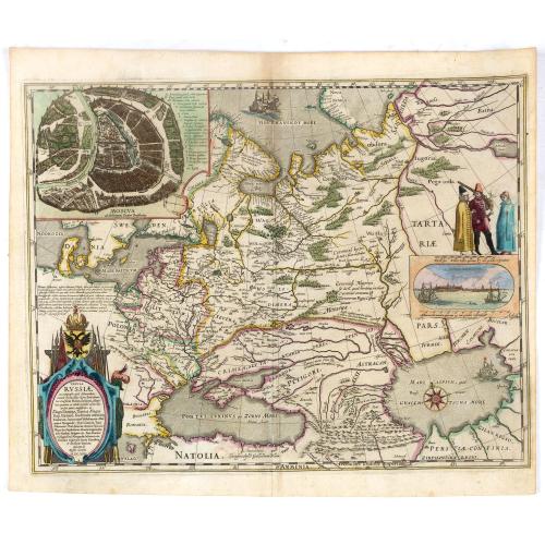 Tabula Russiae ex autographo, quod delineandum curavit Foedor filius Tzaris Boris desums... - Domino regionum Iueriae Kartalinie et Groefiniae Tzari etc: dedicata ab Heselo Gerardo M.DC.XIIII |