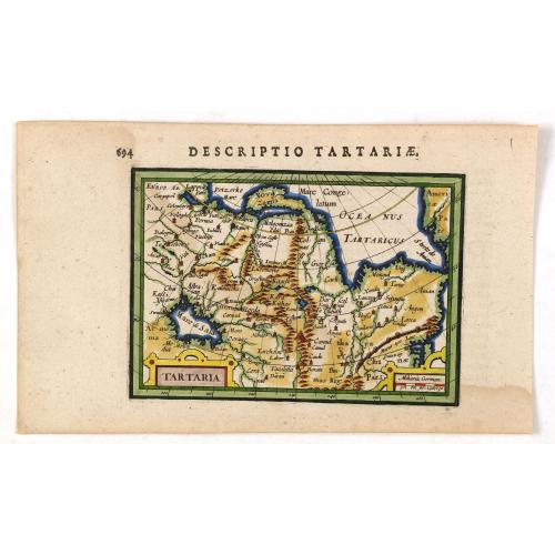 An original early 17th century copper engraved miniature antique map of Tartary, China and part of America by Petrus Bertius.
