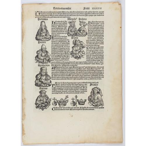 Rare, antique map of  Tercia Etas Mundi. Folium. XXXVIIRare, antique map of  Tercia Etas Mundi. Folium. XXXVII