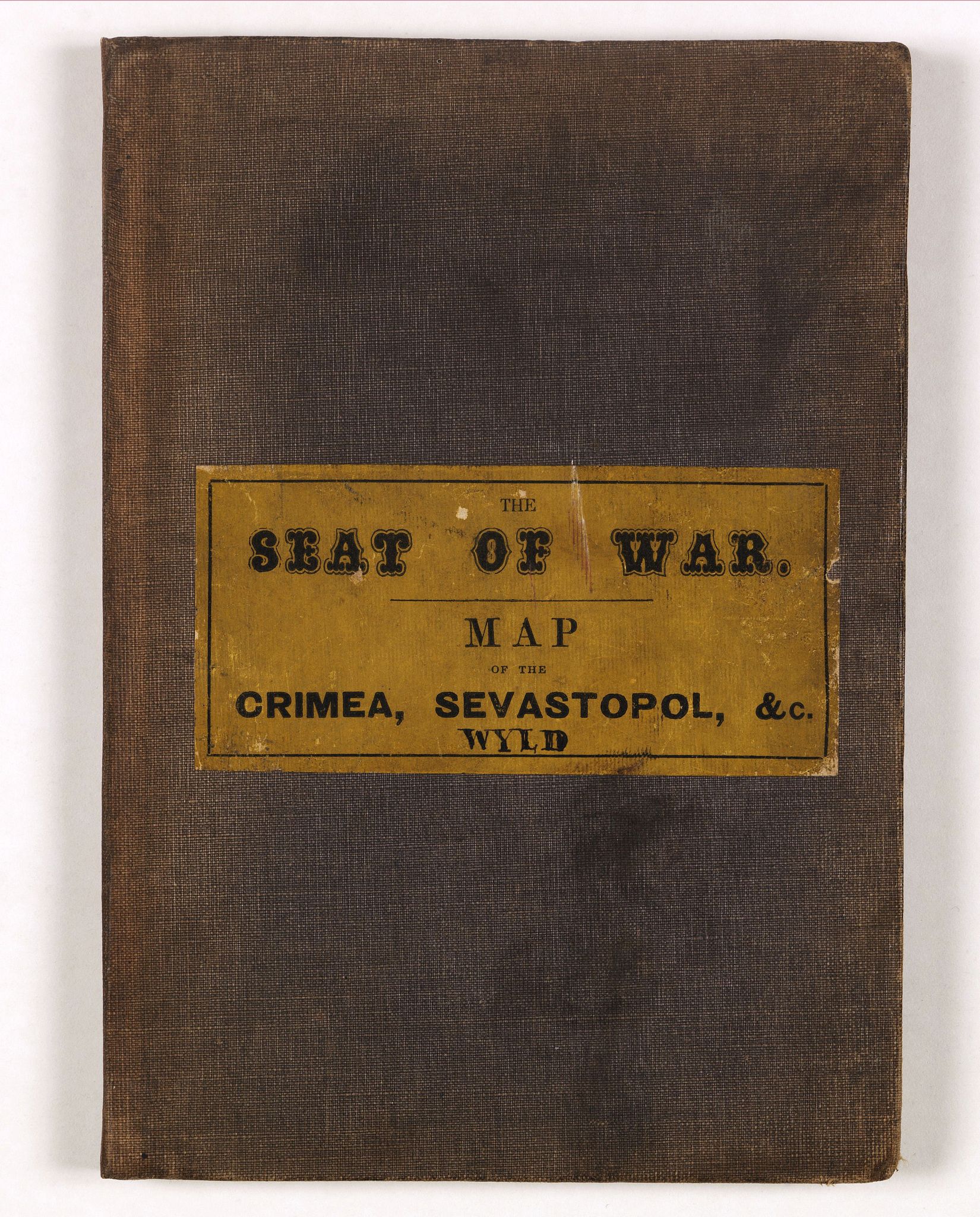 Fourth edition of this folding map of the Crimea. In upper right corner an inset map of the areas around the Black Sea; "The Town & Harbor of Sevastopol with the Batteries & Approaches." "Wyld's List of Recent Publications" attached to front panel of folded map.
