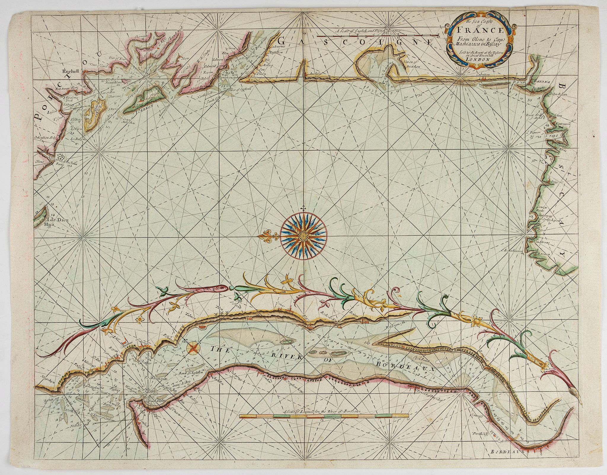 Rare, antique map of  The Sea Coasts of France from Olone to Cape Machicaca in Biscay . . .