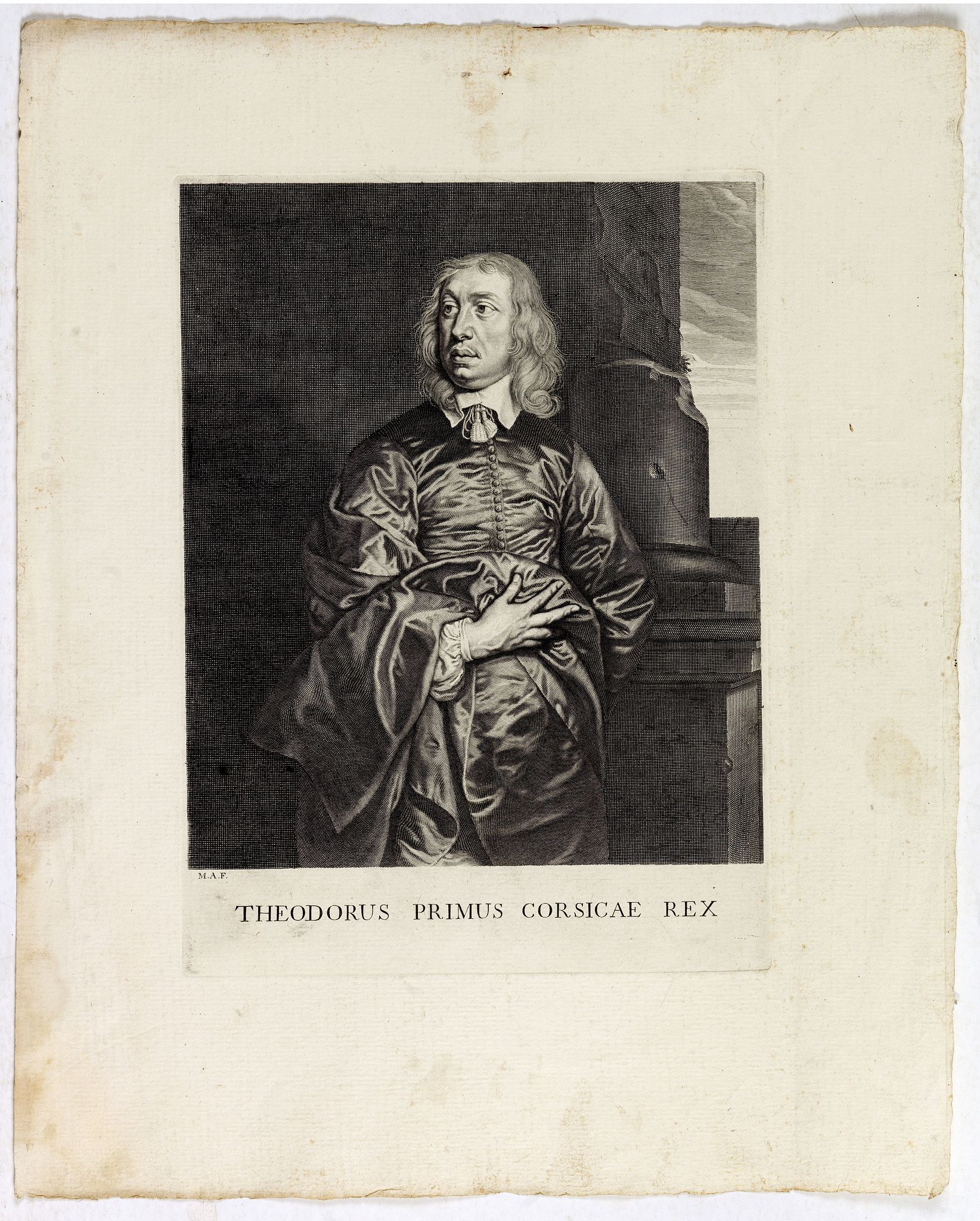 Rare, antique map of  Theodorus Primus Corsicae Rex.