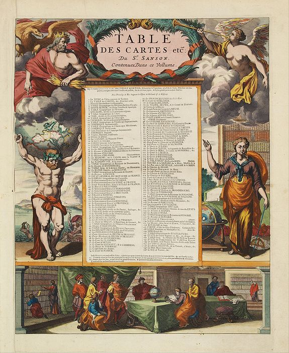 ![Rare, antique map of [Title page] Table Des Cartes etc: Du Sr. Sanson..](/uploads/cache/22714-500x500.jpg)
