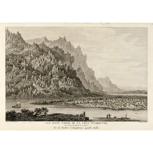 Vue d'une Partie de la Ville d'Iakoutsk Sur le Rive Occidentale de la Léna, et des Rochers Colonniformes appellés Stolbi |