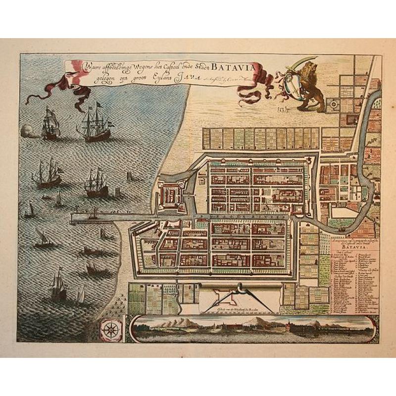 Waere Affbeeldinge Wegens het Casteel ende Stadt Batavia Gelegen opt Groot Eylant Java. |