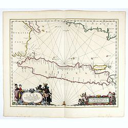 An elegant sea chart of the island of Java with parts of Sumatra, Borneo and Bali. The map includes only coastal detail and shows the Dutch capital in the East Indies at ...