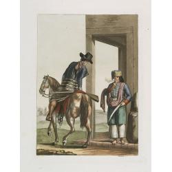 Aquatint depicting Spanish Sheppard's in Paraguay.Engraved by Gallina.From Giulio Ferrario's work Le Costume Ancien et Moderne ou Histoire du gouvernement, de la milice, ...