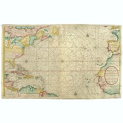 ¤ Engraved by I.van Anse. A very representative example of a Dutch chart of the Atlantic, showing the north-east coast of America, the coasts of Africa and Europe and So...