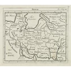 Attractive map of Persia, ornated with a large rococo title cartouche. Boundaries outlined in hand color.From theAtlas moderne ou collection de cartes sur toutes les part...
