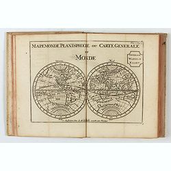 Second edition of this charming travel compendium illustrated with a fine world map in two hemispheres prepared by de l'Isle. California as an island. The hemispheres are...