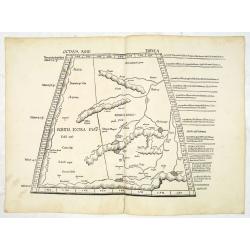 Attractive woodblock map, depicting the Caspian Sea, Black Sea and the Persian Gulf, extending to the Imaus Mountains. according to Ptolemy. In the center of the map is...