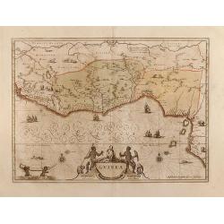 Uncommon map of the Guinea, with fine title cartouche upper right . Dated 1671 and without the inset map added in 1677.