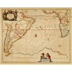 This from Johannes Janssonius' sea-atlas 'De Water-Weereld' covers the area between the Cape of Good Hope and the most southern tip of South America. Giving many place n...