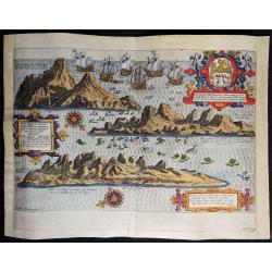 Important map of Ortelius of the strategic islands of the Azores, in the 16th century an important hub from the Spanish Americas and the Silver fleet. The observation of ...