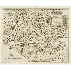 A charming map from the famous Jansson-Visscher series of maps covering the east coast from the Chesapeake Bay to Maine. The map has a particularly large title piece show...