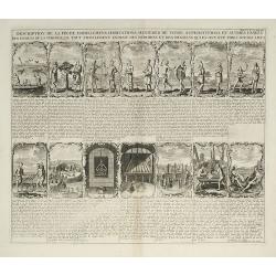 Decorative print published in : Het groote tafereel der dwaasheid : vertoonende de opkomst, voortgang en ondergang der actie, bubbel en windnegotie, in Vrankryk, Engeland...