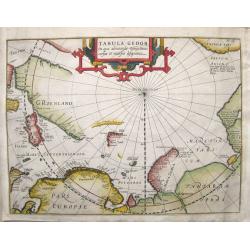 Artic pole map from the rare Cloppenburg edition slightly larger format and more scarce edition of the Mercator/Hondius "Atlas Minor". The classic map of the Ar...