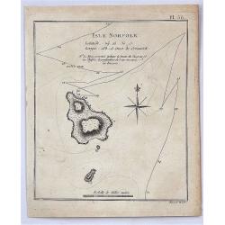 A fine map of Norfolk Island from James Cook's 2nd voyage. With note: "The pricked line shews the ship's track & the figures the depth of water in fathoms"....