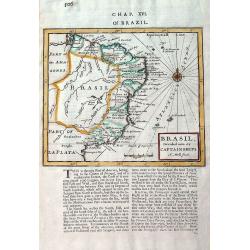A very fine and decorative map of Brazil. From the book "A Collection of Voyages and Travels" by Churchill, the map came from the section containing a descripti...