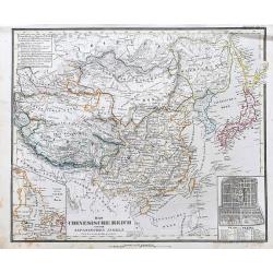 A fine steel-engraved map from a scarce German Atlas: 'Schuberth's Hand-Atlas'. It shows China, Korea and Japan, as well as surrounding areas including Mongolia, Siberia,...
