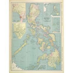 Fine chromolithograph or colored lithograph map Of the Philippines, with insets of Manila, Manila to Dagupan, China Sea, Sulu Archipeligop and Batanes (Bashee). From â€...