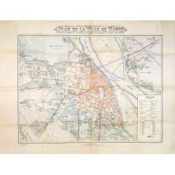 Rare and detailed plan of Hanoi, scale 1:10.000. The plan was published at the occasion The Exhibition of Hanoi which opening its doors on November 3, 1902. The exhibitio...