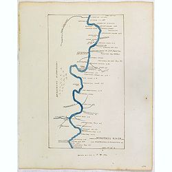 Finely executed pen drawing in brown ink with river in blue color of The Eastern Frontier Of India. Scale is in English miles. Underneath the title an explanation.From th...