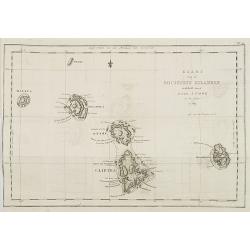 A detailed chart of the Santa Cruz islands, to the north of the New Hebrides, including an inset chart of Carteret and Gower Islands, Baye de L'Hirondelle and Havre de By...