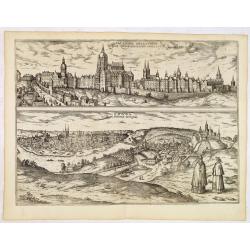 A fine set of two town-views on one sheet, the upper view showing the Czech Capital of Prague. The Imperial Palace appears to the left with the old and new cities below e...