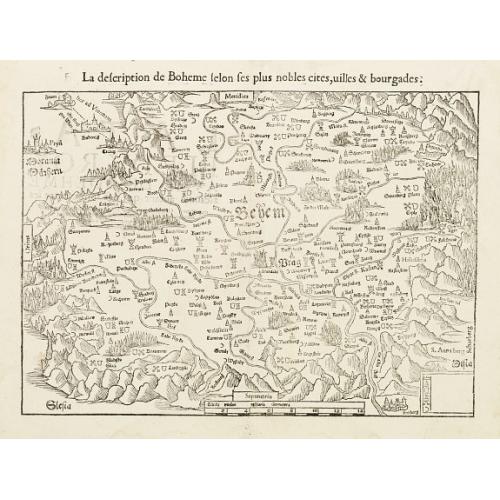 Ten text leaves illustrated with wood block prints relating to Bohemia and Moravia. From the 1552 Latin text edition of Münster's Cosmographia, which is a short and com...