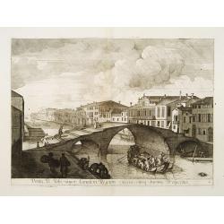 Lively view of a canal in Florence after Giuseppe Zocchi (1711or 1717 - 1767) and engraved by Antonio Pazzi. From "Scelta di XXIV Vedute delle principali contrade, p...