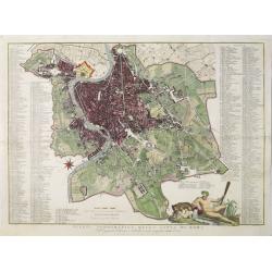 Very rare bird's-eye plan of Rome. To the sides a historical description and a numbered key.George Christophe Kilian (1709-1780) active as engraver of Augsburg published ...