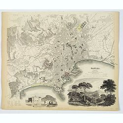 An attractive town plan of Naples, a pair of handsome decorative vignette views of 'Naples from the Hill of Posilipo' and the 'New Castle and Castle St. Elmo'. Plan is ve...