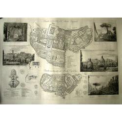 Famous and rare plan of the Monte Quirinale in Rome. Engraved by Vespignani, designed by Rossini. Large sheet, with 2 detailed plans of the Monte Quirinale and Monte Capi...