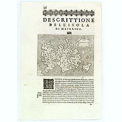 A delightful small map of Majorca, the largest of the Balearic Islands. First published in 1572, this is the later edition of 1620. The place names of Palma, Cala Figera,...