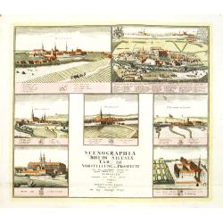 Seven panoramic town-views of Breslau and Sagan on one sheet. After a design by the Prussian artist Friedrich Bernhard Werner (1690-1778) and published by Homann's heirs....