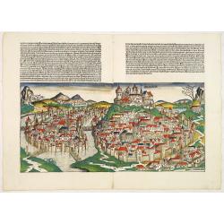 A imaginary view of a Lithuanian or Polish City, however the earliest obtainable view of this period.Page from the richest illustrated Incunabula, the famous: Liber chron...