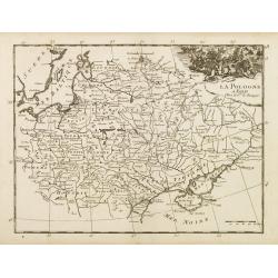 Attractive map of Poland, ornated with a decorative title cartouche. Boundaries outlined in hand color.Prepared by Le Sieur Janvier, Jean Denis [Robert], French geographe...