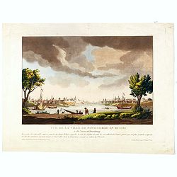 This aquatint print figures a panoramic view of the town of Nizhny Novgorod, located about 400 km east of Moscow, where the Oka empties into the Volga.The city is an impo...