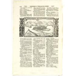 Town view of Sevastopol, set in a text page with Latin text. Taken from "Universus Terrarum Orbis", printed in Padua in 1713.