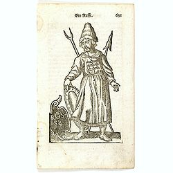 Decorative view of Moscow city, oriented to the west. At the base of the map there are a series of decorative views illustrating Russian hunters and farmers. A decorative...