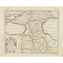 Uncommon miniature map of Georgia from Pierre Duval's La Geographie Universeille dated 1676. Following his Cartes de geographie in 1657, Pierre Duval published this small...