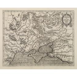 A scarce map of the ancient region of Asiatic Sarmatia - now Southern Russia and part of Ukraine, around the Azov sea. Shows Armenia Maior, Iberia, Albania, Colchis, Port...