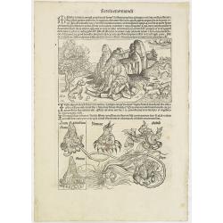 One of the most sought-after prints from the Nuremberg Chronicle : The building of Noah's Arch. Page from the richest illustrated Incunable, the famous: Nuremberg Chronic...