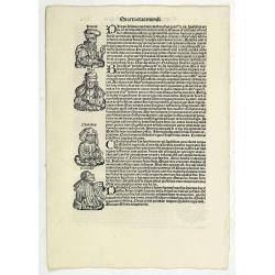 The Latin text page is illustrated with a depictions of Noble men and scientists. Page from the richest illustrated Incunable, the famous: Nuremberg Chronicle, published ...