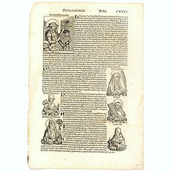 The Latin text page is illustrated with a depictions of Kings, Noble men and scientists. Page from the richest illustrated Incunable, the famous: Nuremberg Chronicle, pub...