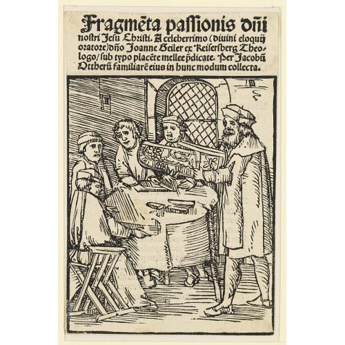 Title page to: "Chrysopassus predestinationis....." Edited by J. Eckius and printed in Augsburg, officina Willania 1512/1514. Fullpage woodcut Jacob, crowned by...