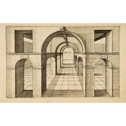 Engraving from Perspective, Dat is, de hooch-gheroemde conste eens schijnende in oft door-siende ooghen-ghesichtespunt ... (&c.) by Hans, or Johannes Vredeman de Vrie...